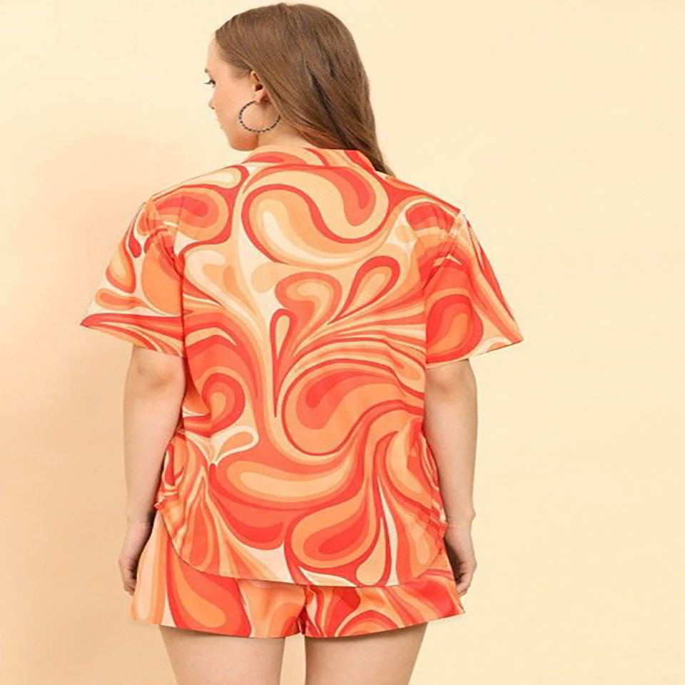 Women's High Waist Casual Terry Fabric Co-Ord Set Printed Jumpsuits & Playsuits With Button Decoration for Daily Wear & Work