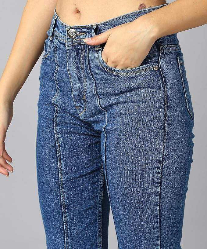 Women's High-Waist Flared Denim Pants Long Wide Leg Flare Trousers for Winter latest Regular Denim with Flat Front Style