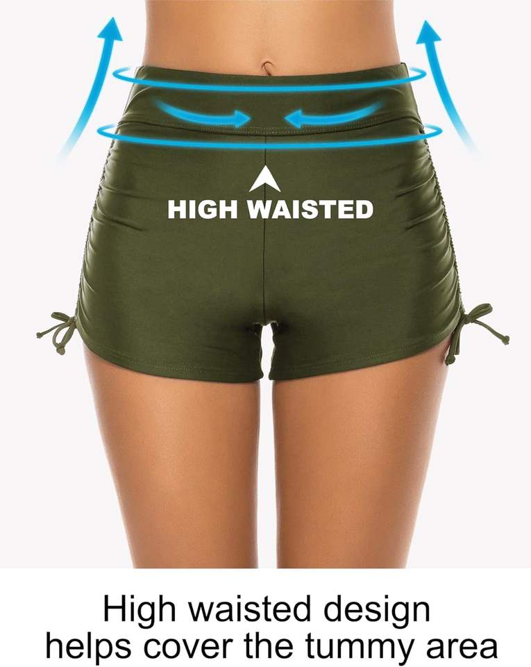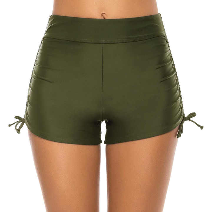 Women's High Waist Racing Swim Briefs Drawstring Stretch Sports Bathing Shorts with Sides Drawstring Bikini Style