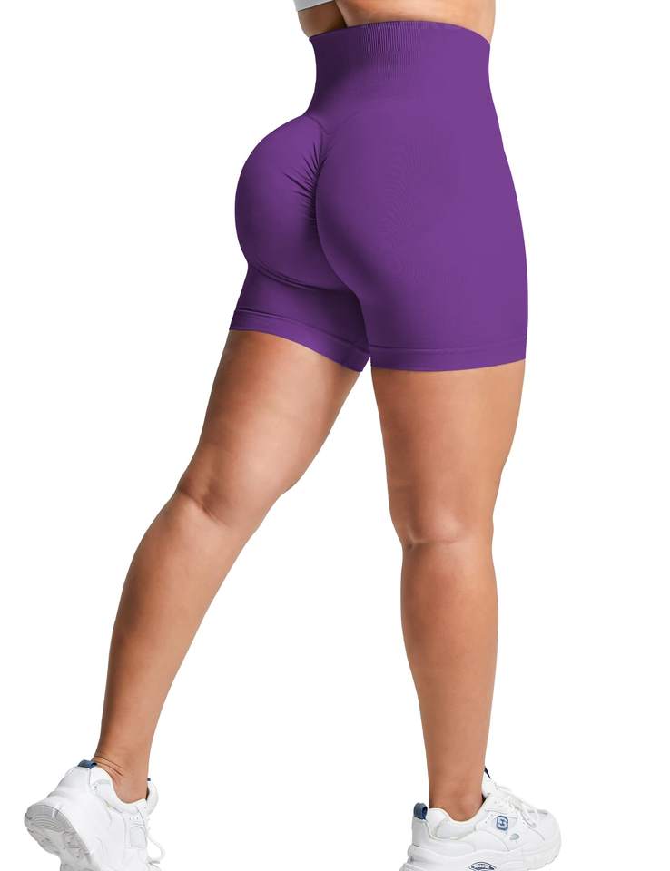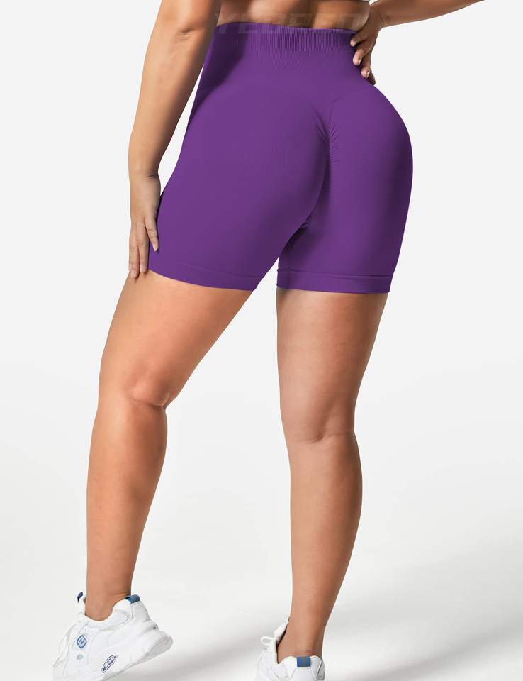Women's High Waist Seamless Yoga Shorts Solid Pattern Recycled Spandex/Nylon Gym Fitness Leggings with Elastic Waist Closure