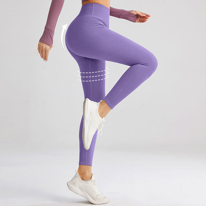 Women's High Waist Seamless Yoga Tights Scrunch Butt Gym Pants with Solid Pattern for Abdomen & Foot Support for Running Fitness