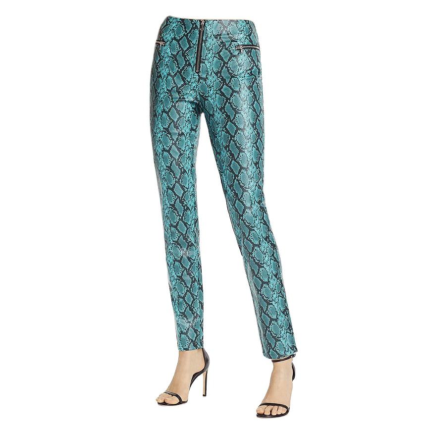 Women's High-Waist Snakeskin Leather Pants Breathable Casual Style with Flat Front Shiny Solid Color for Winter