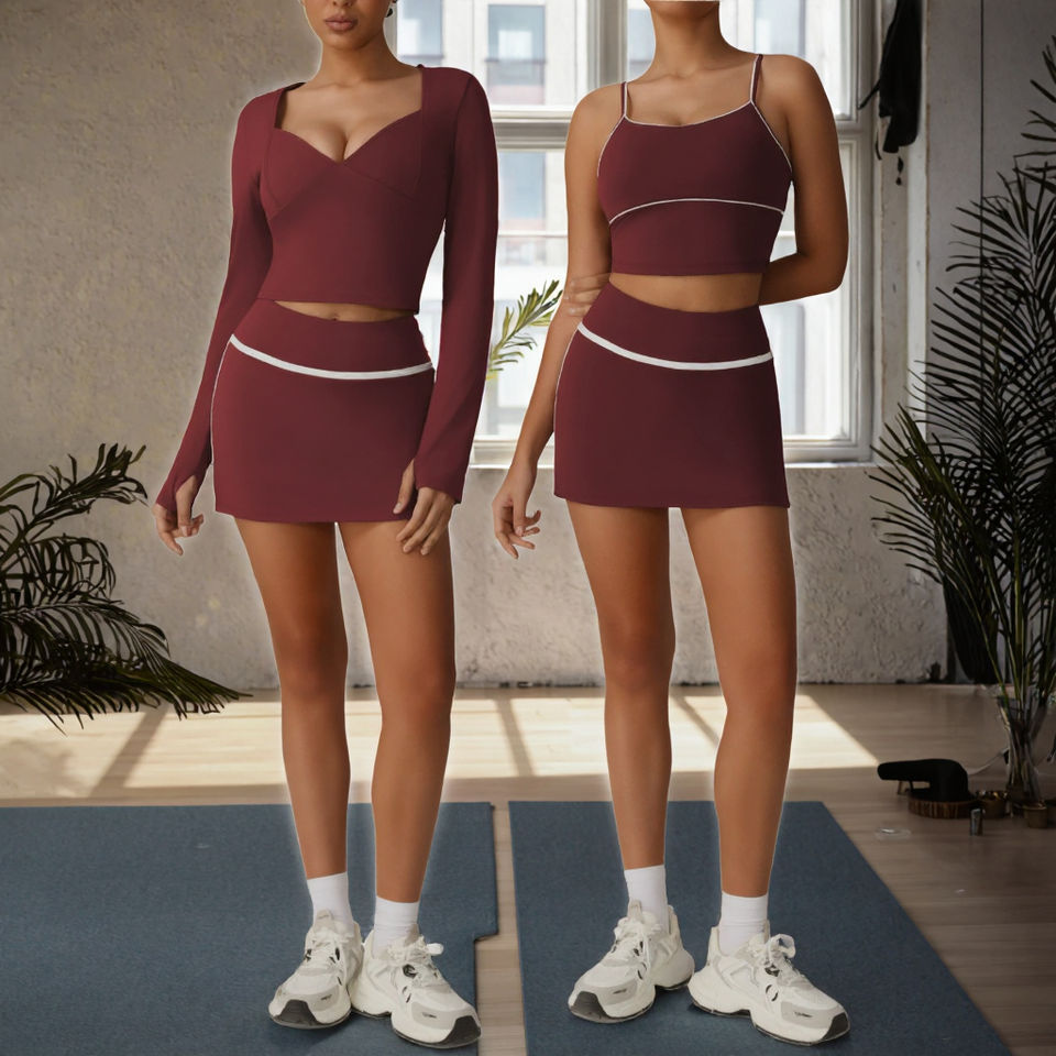 “Women’s High-Waist Yoga & Running Set – Slim Fit Quick-Dry Skirt, Breathable, Nude Solid, Plus Size Available”