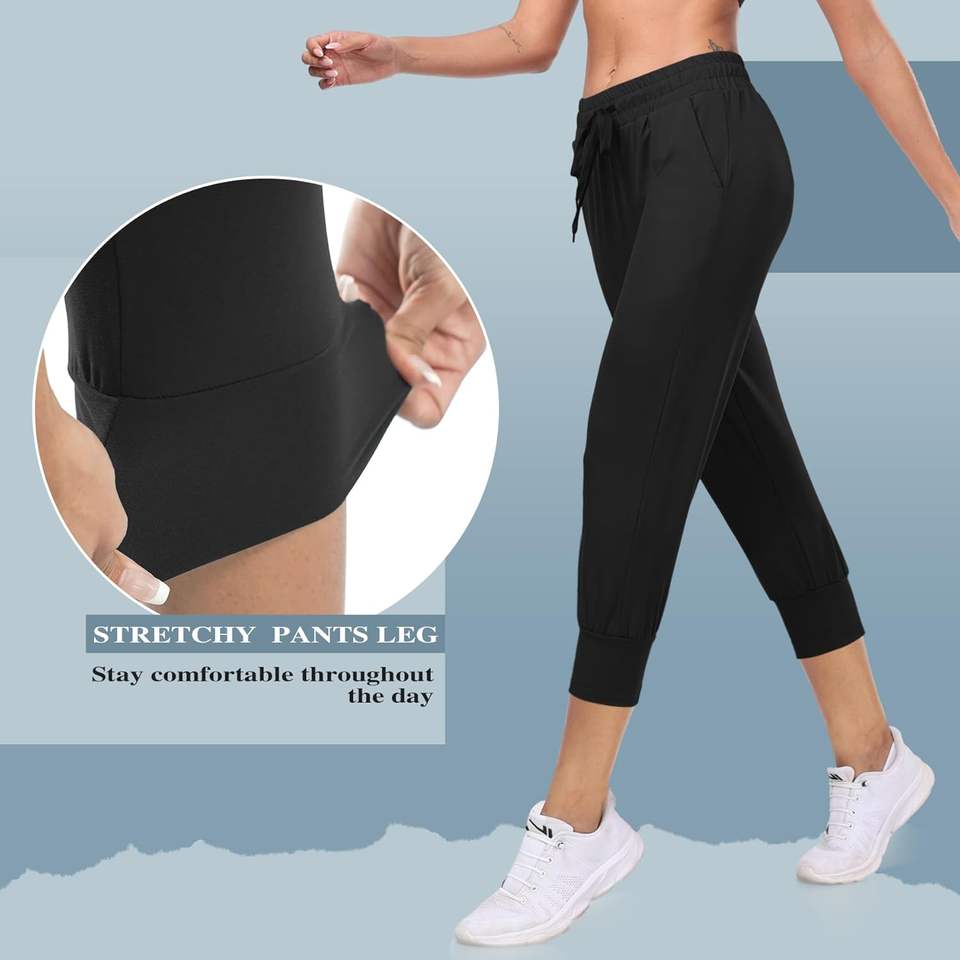 Women's High-Waist Yogajogger Capri Sweatpants 3 Pack Athletic Running Leggings Flat Pockets for Gym Workout for Winter Lounge