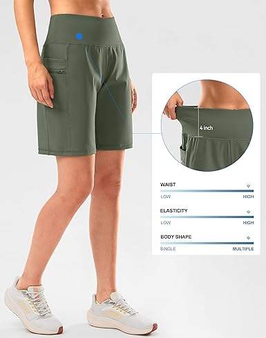 Women's High-Waisted 9'' Knee Length Athletic Workout Shorts with Zipper Pockets Breathable Running Jogging Gym Bermuda Shorts