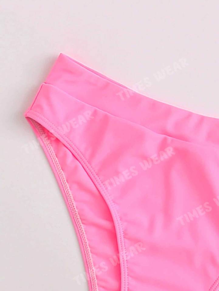 Women's High-Waisted Bathing Suit Plain Print Summer Beachwear Bikini Swimsuit