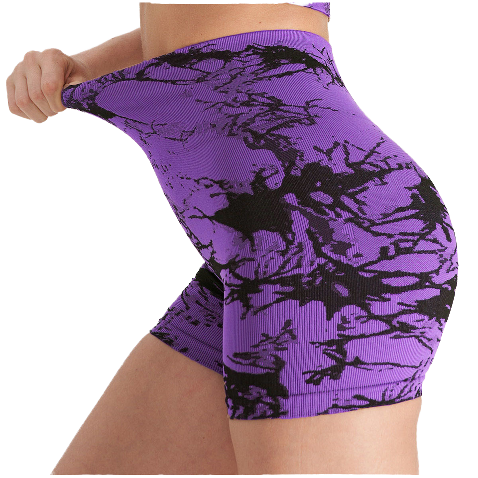 Women's High-Waisted Jacquard Tie-Dyed Yoga Pants Tummy-Tightening & Quick-Drying Fitness Sports Shorts Short Sleeves Leggings