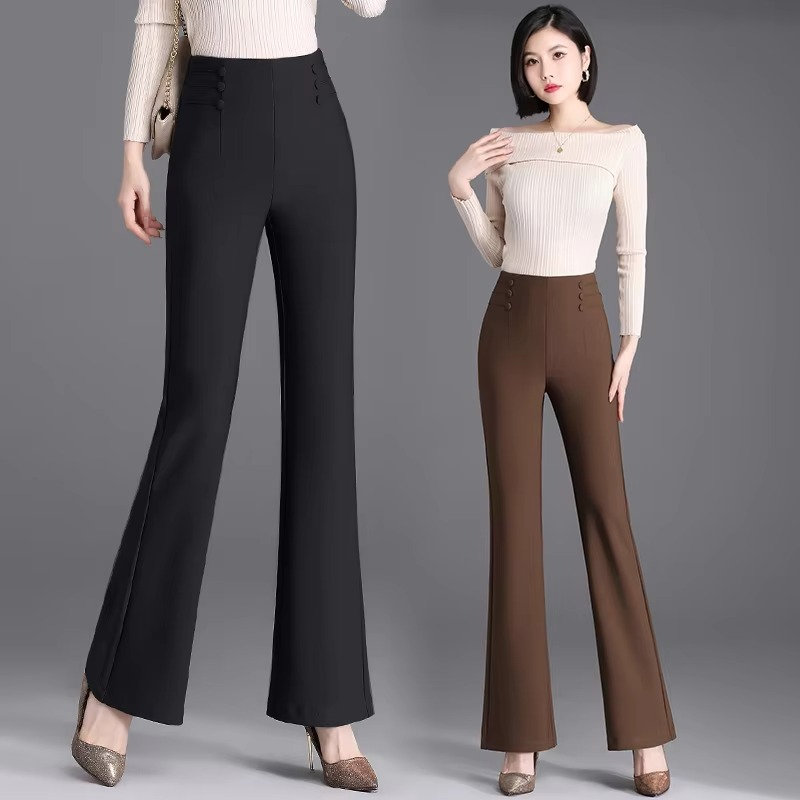 Women's High-Waisted Micro Flared Pants with Solid Patchwork Button Pockets Fashion Simple Casual Straight Trousers for Summer
