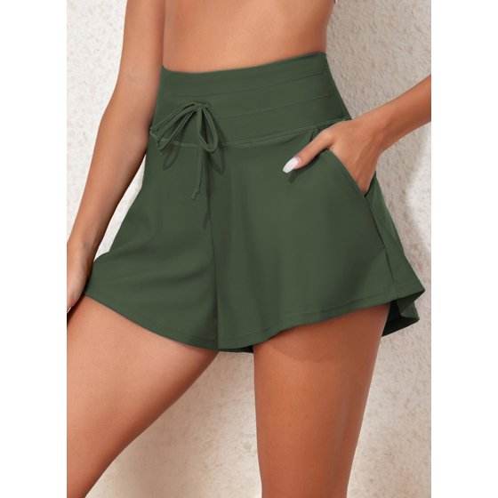 Women's High-Waisted Workout Shorts Booty-Lifting Breathable Double Layered Side Pockets Outdoor Leisure Fitness Yoga Shorts