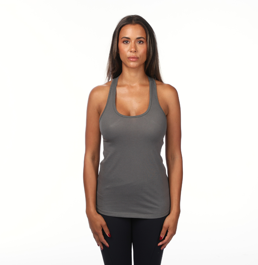 Women's Ideal Racerback Tank Dark Gray Women's Tank Tops Workout Scoop Neck Breathable Stretch Cotton Jersey tank Top