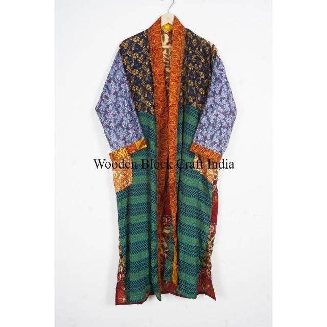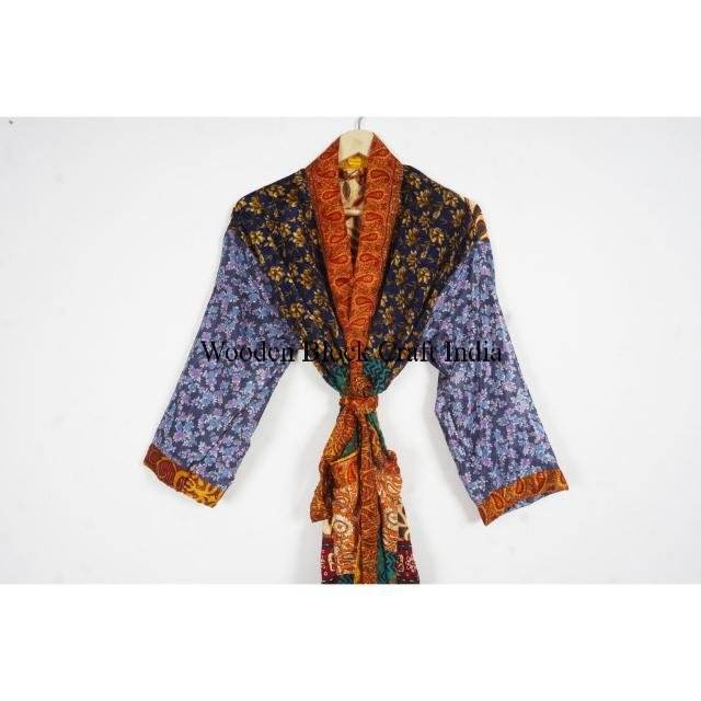 Women's Indian Silk Sari Kimono Elegant Floral Long Sleeve Dressing Gown Duster Jacket Wholesale Summer Sleepwear