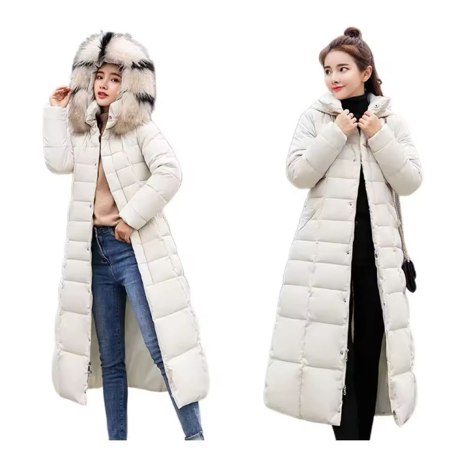 Women's Jacket Long Body Warmer Thick Woven Coats for Ladies Detachable Fur Collar Padded Puffer Down Jacket