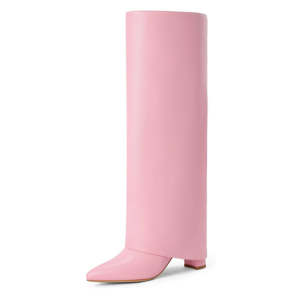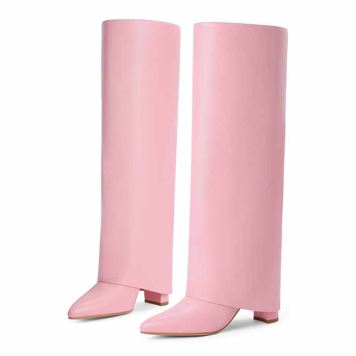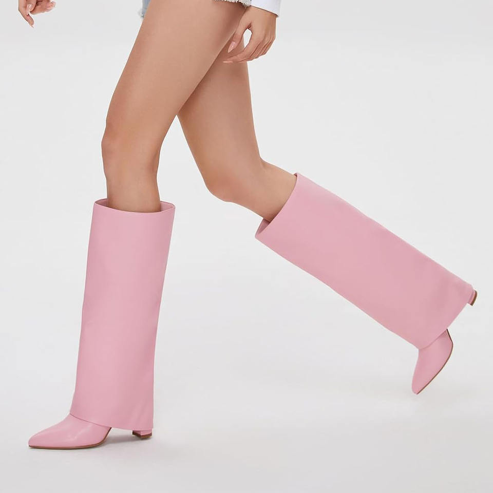 Women's Knee-High Pu Leather Boots Over-the-Knee High Heel Pointed Toe Shoes Long Warm Fashion Ladies Boot