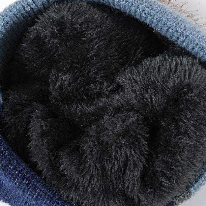 Women's Knitted Ribbon Fur Ball Winter Fleece-lined Beanie Hat Thermal Thickened Woolen Cap Wholesale
