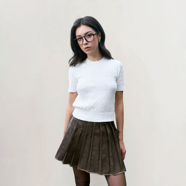Women's Knitted Striped Casual Short-Sleeve Regular Fit Vest with Woven Fabric by Routine