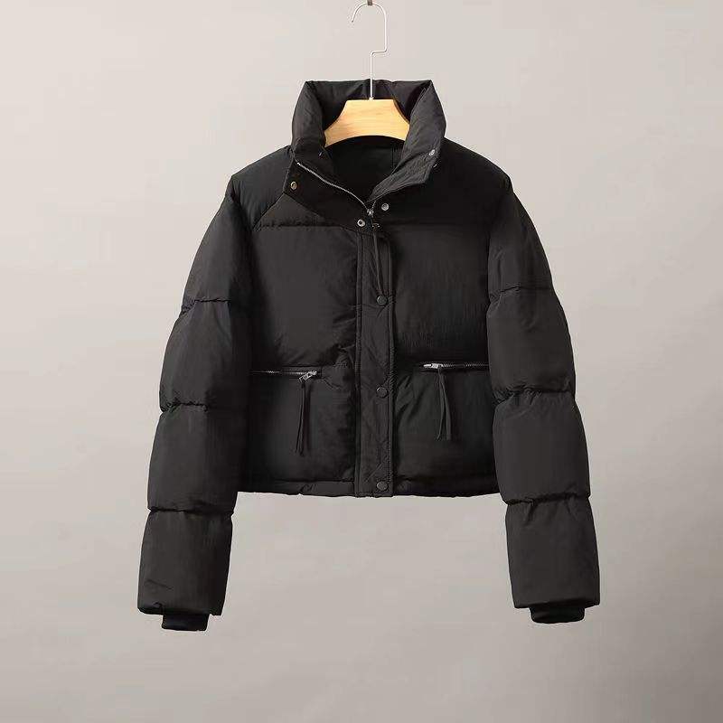 Women's Korea Style Winter Bomber Jacket Waterproof Windproof Stand Cotton Wool Simple Loose Fit Regular Length Puffer Coat