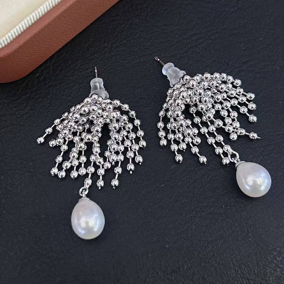 Women's Korean INS High-End Minimalist Niche Silver Fireworks Round Tassel Earrings Versatile Fashion Drop Earrings