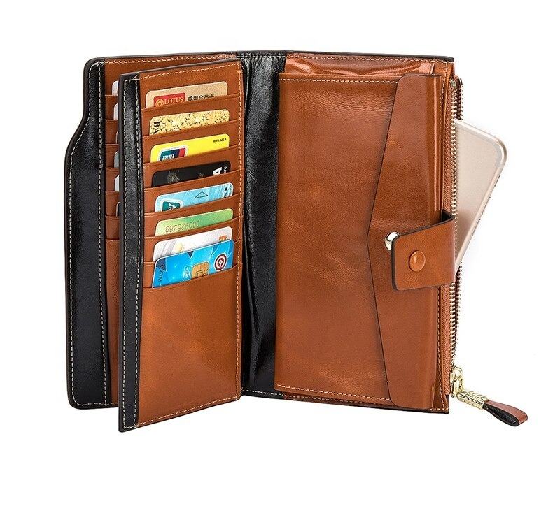Women's Ladies Soft Real Leather Designer Gift Long Business Card Holder Organizer Travel Snap Wallet Fashion Purse LKU-0328