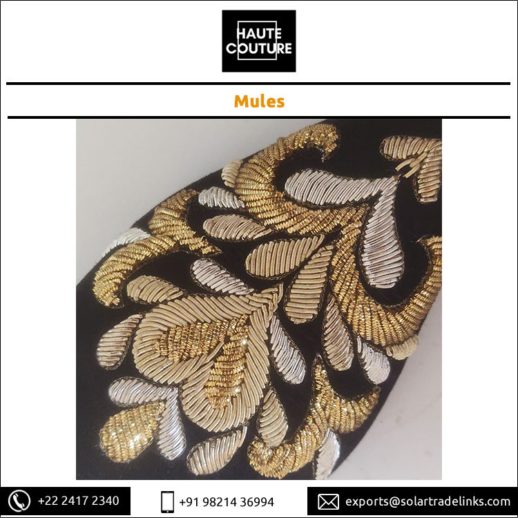 Women's Ladies Wear Handmade Hand Embroidered Velvet Bullion Kora Threads Made Heart Design Mules and Slippers From India