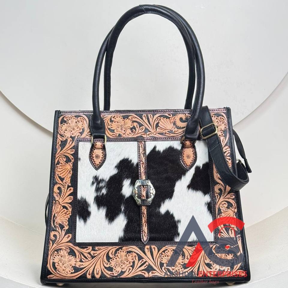 Women's Large Capacity Hand Tooled Leather Luxury Trendy Conceal Carry Square Crossbody Tote Bag Genuine Cowhide Leather Handbag