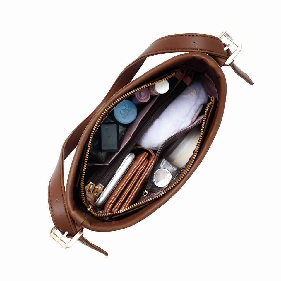 Women's Large Capacity Old Flower Design Crossbody Tote Bag One-Shoulder Solid Color with Zip Closure Polyester Lining