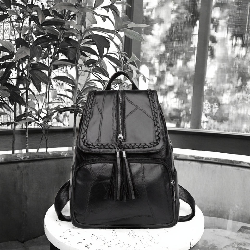 Women's Large Capacity Zipper Closure Soft Leather Backpack with Tassel Pendant Polyester Lining for Students School Outdoor PU