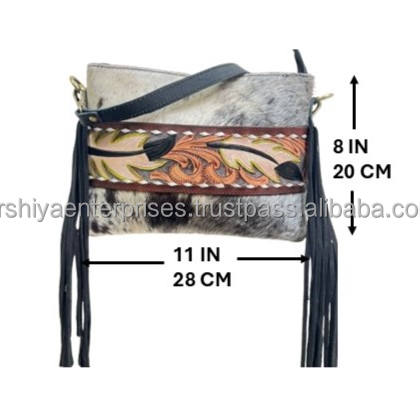 Women's Large Crossbody Handbag With Boho Hair High Quality Popular Hand Tooled Cowhide Leather Fringe Shoulder Bag for Women's