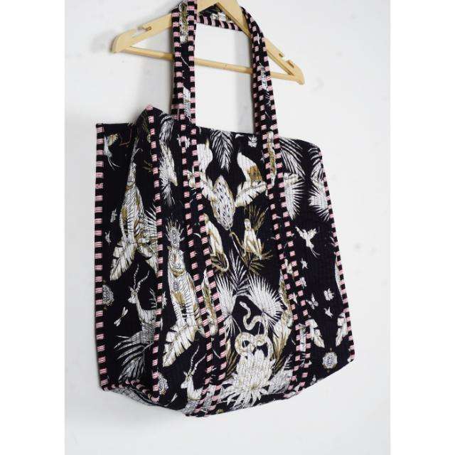 Women's Large Floral Pattern Quilted Tote Bag Custom Design Multicolor Cotton Indian Shoulder Beach Handbag