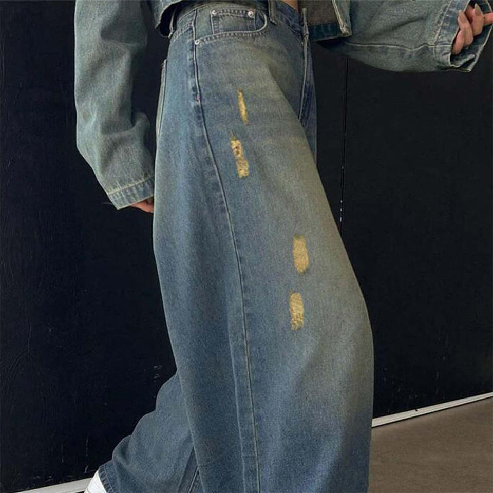 Women's Latest Design Streetwear Wide Leg Jeans Custom High Waist Baggy Ripped Tears Pants Solid Pattern Women Jeans