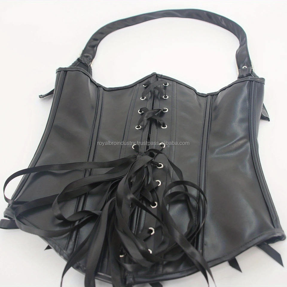 Women's Leather Corset Bustier | Gothic Waist Trainer Cincher Breathable Embroidery Sequined Design | Sexy Body Shaping Lingerie