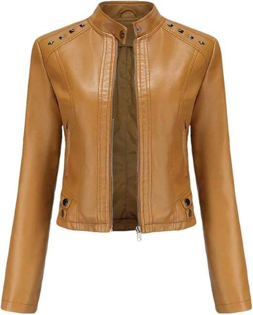 Women's Leather Cropped Tops Leather Jackets Coats Stand Collar Jackets Jackets