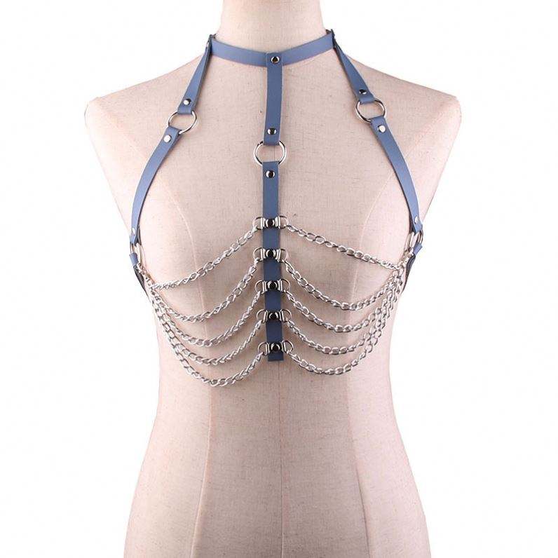 Women's Leather Harness Bra Bdsm Punk Gothic Bondage Chains Chest Harness Erotic Lingerie Fetish Women Rave Harness Bra