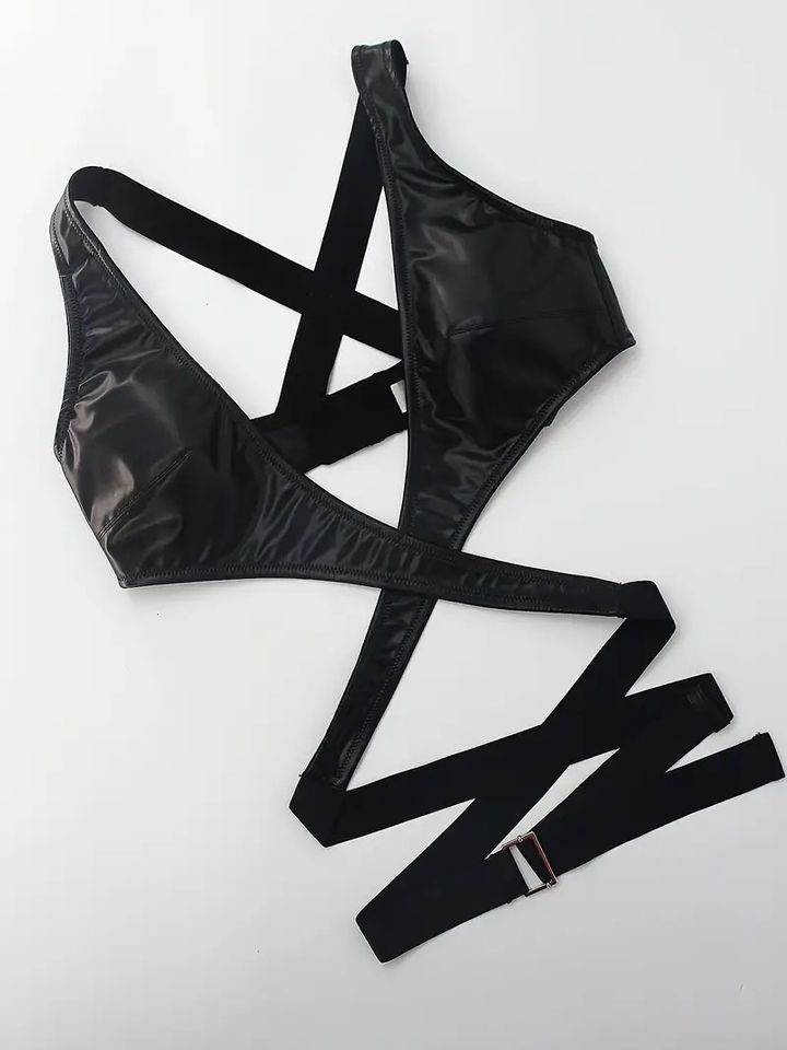 Women's Leather Waist Cinchers Corset Crisscross Backless Halter Top Sleeveless Buckle Detail Sexy Top Medium Control