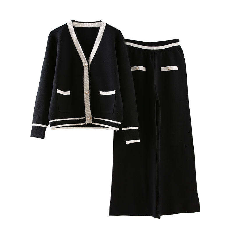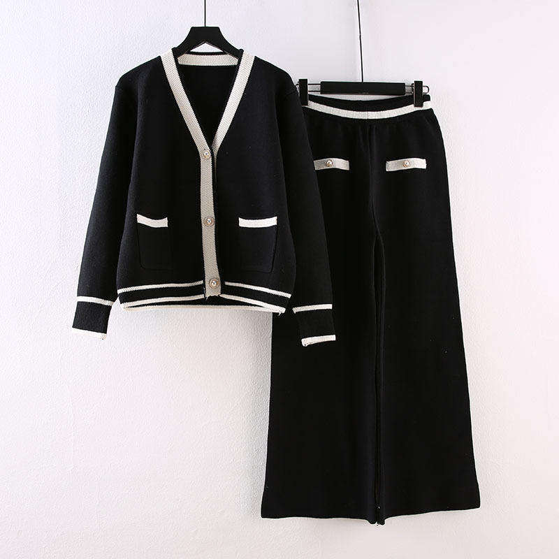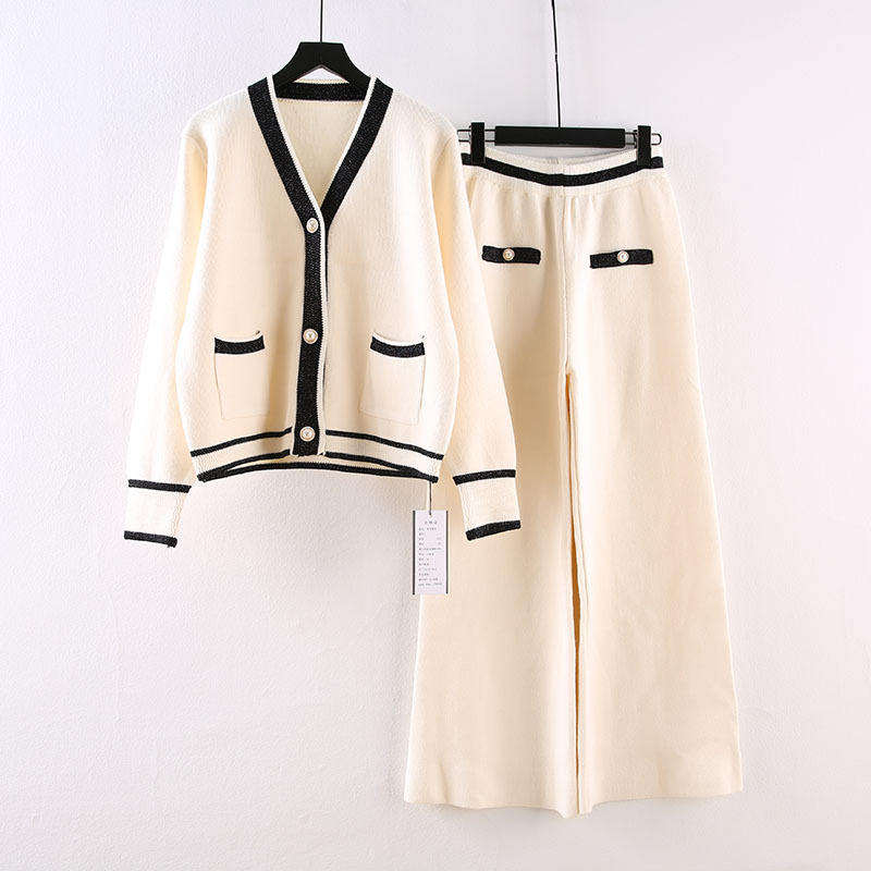 Women's Leisure Two-Piece Suit Wide Leg Pants with Temperament Knitted Sweater Plus Size Spring Collection Factory Wholesale