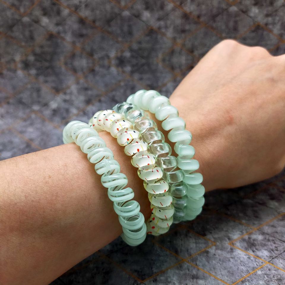 Women's Light Green Color Seamless Hair Tie 4pcs a Set Simple Phone Cord Jewelry with Sweet Colorful Touch