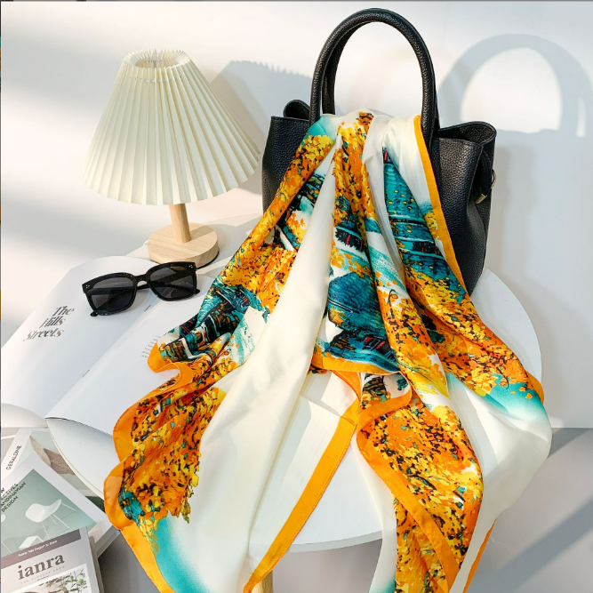 Women's Light Luxury High-End Satin Long Scarf New Style Fashion Print Shawl for Muslims