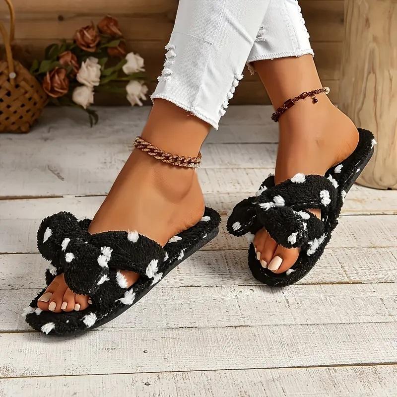 Women's Lightweight Anti-Slip Indoor Winter Slipper Open Toe Plush Waterproof With Bowknot Wholesale Home Use Slippers