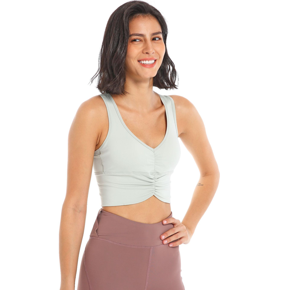 Women's Lightweight Breathable Four-Way Stretch Yoga Sport Bra Longline Vest Plus Size 3XL Ruched Fitness Gym Camisole