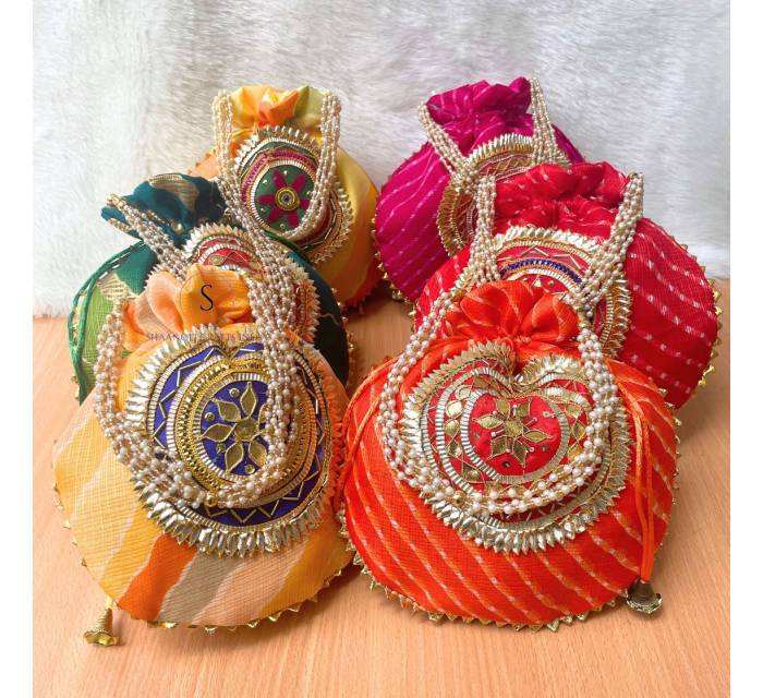 Women's Lightweight Durable Lehriya Printed Potli Bags with Gota Patti Work Ethnic Embroidered Designs Weddings Return Favors