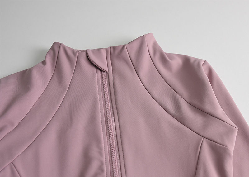 Women's Lightweight Gym Activewear Cropped Long Sleeve Workout Jacket Zip Sports Training Coat for Autumn Front Logo Position