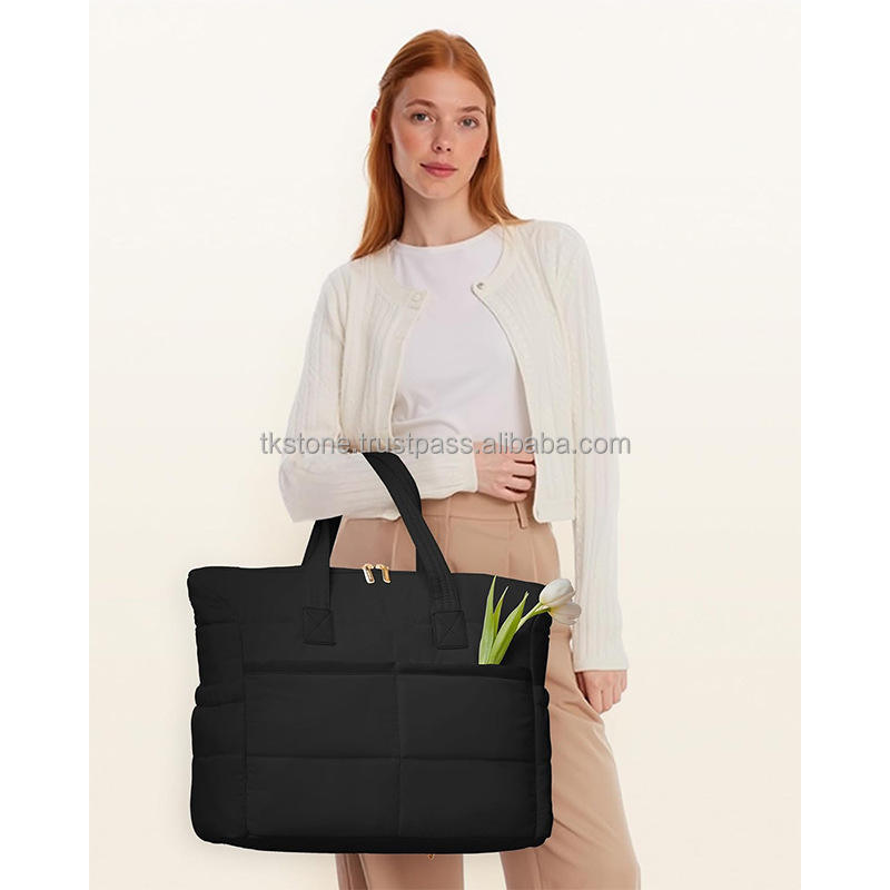Women's Lightweight Nylon Tote Bag Fashionable Puffy Handbag for New Work Travel Organizer Casual Use Summer Shoulder Bag-USA EU