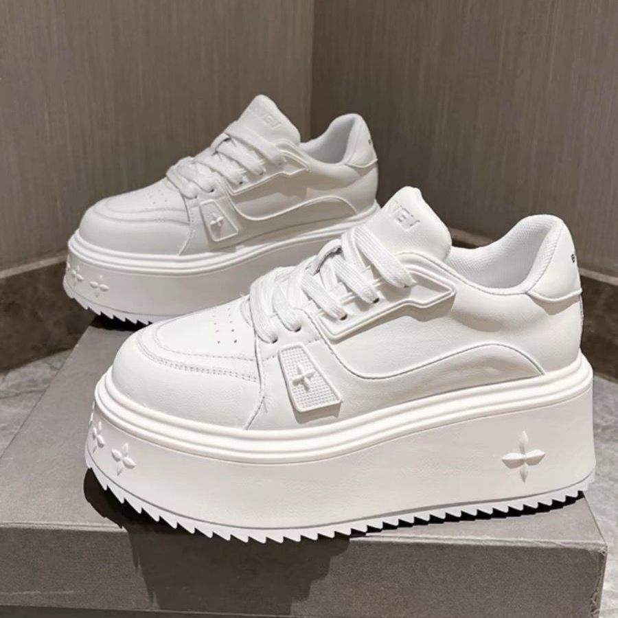 Women's Lightweight Sports Shoes Thick-Soled White Platform Casual Shoes with All-Match High Heels Height-Increasing Allure
