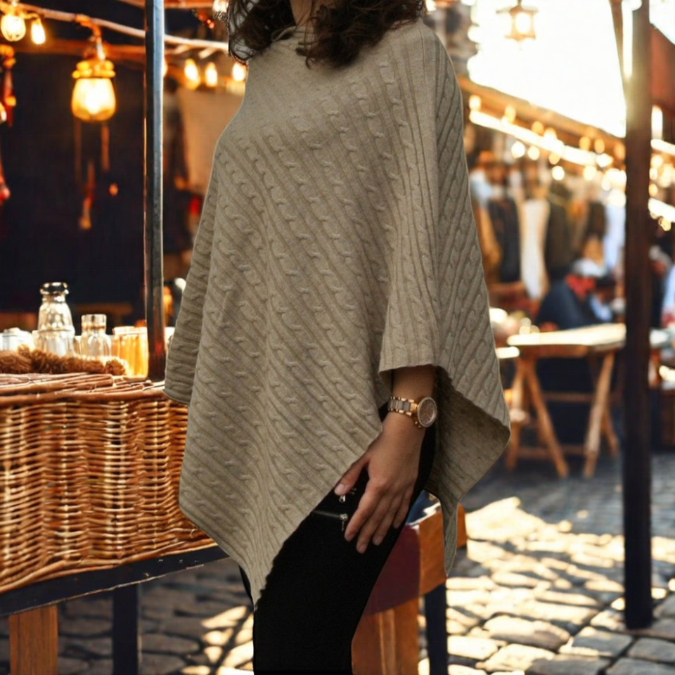 Women's Lightweight Winter Cable Knitted Poncho Soft Warm Cashmere with Side Neck New Dressing up Styles for Adults