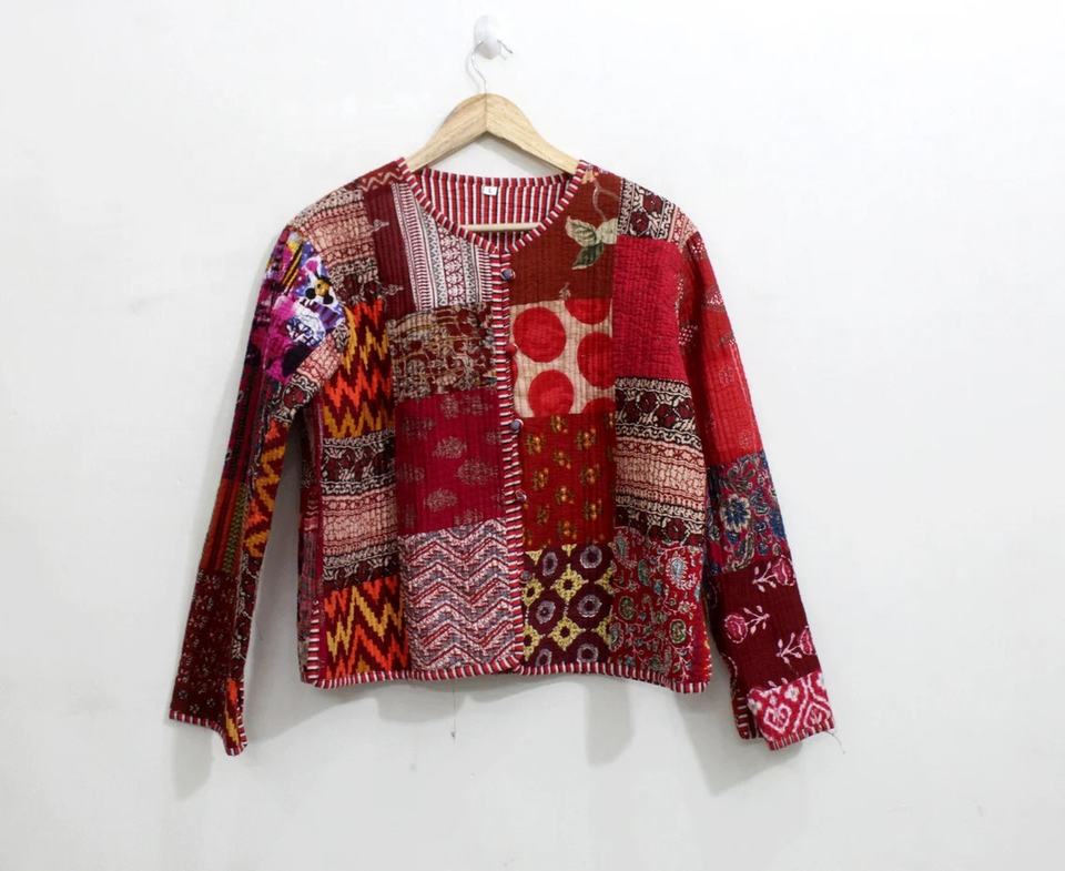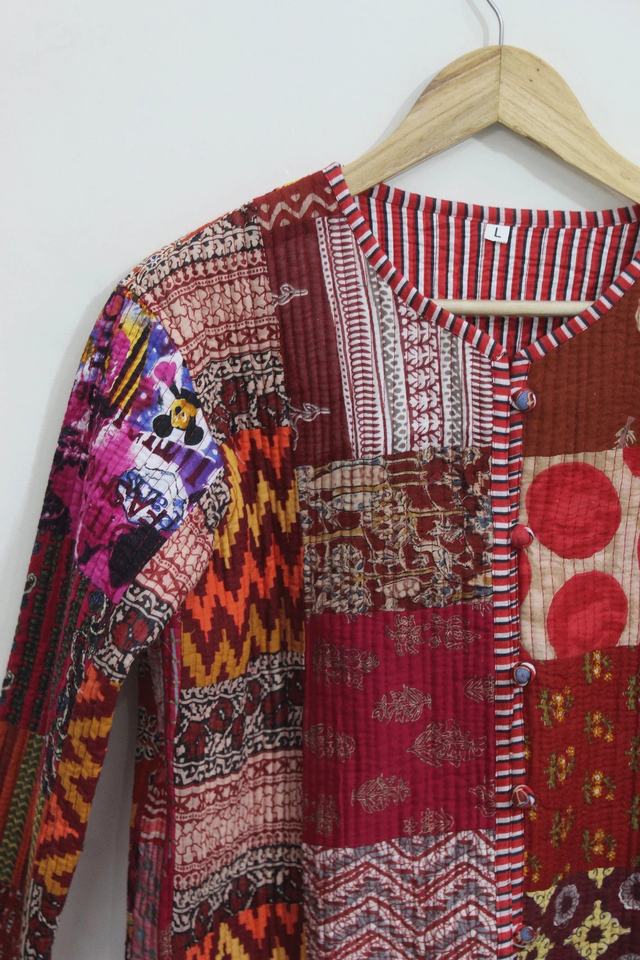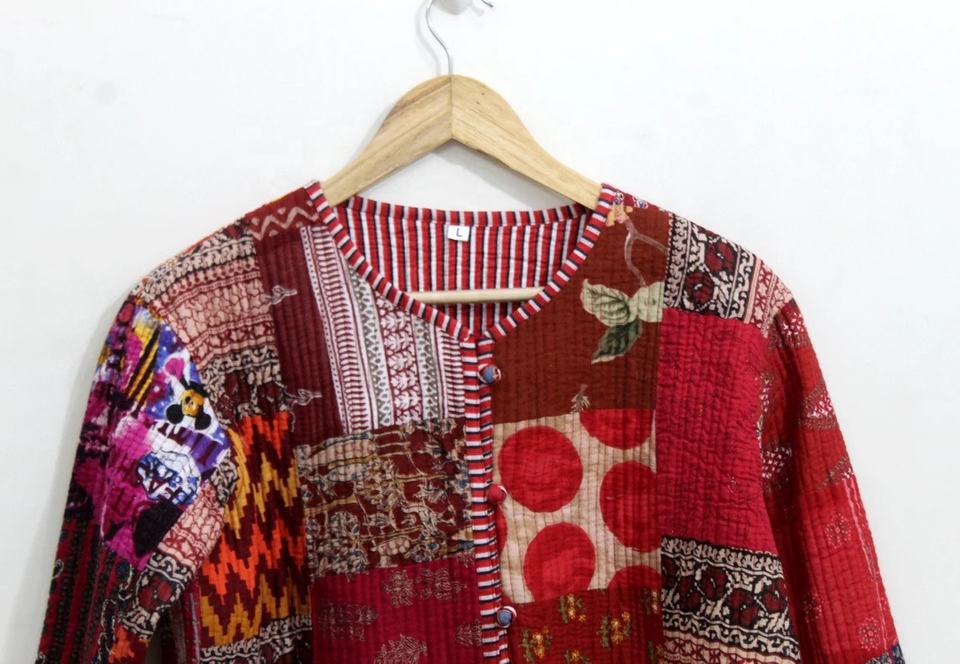 Women's Long Autumn Winter Jacket Coat Cotton Floral Bohemian Style Patchwork Quilt Breathable Woven with Button Decoration