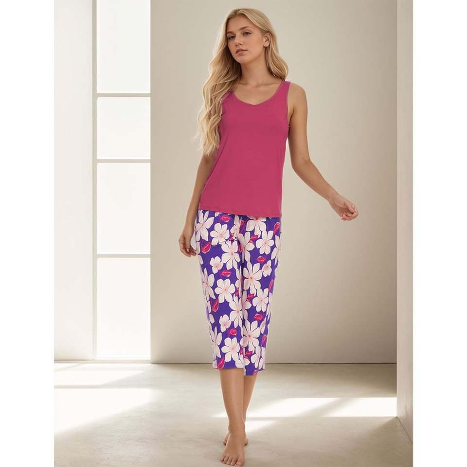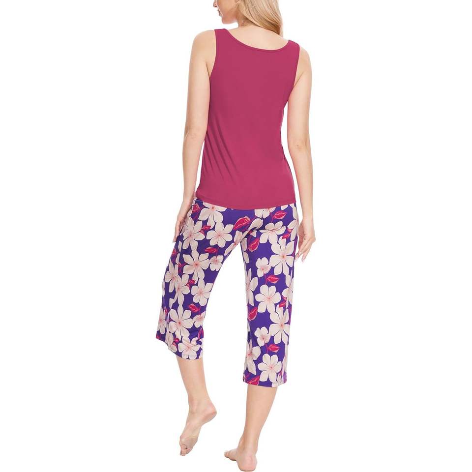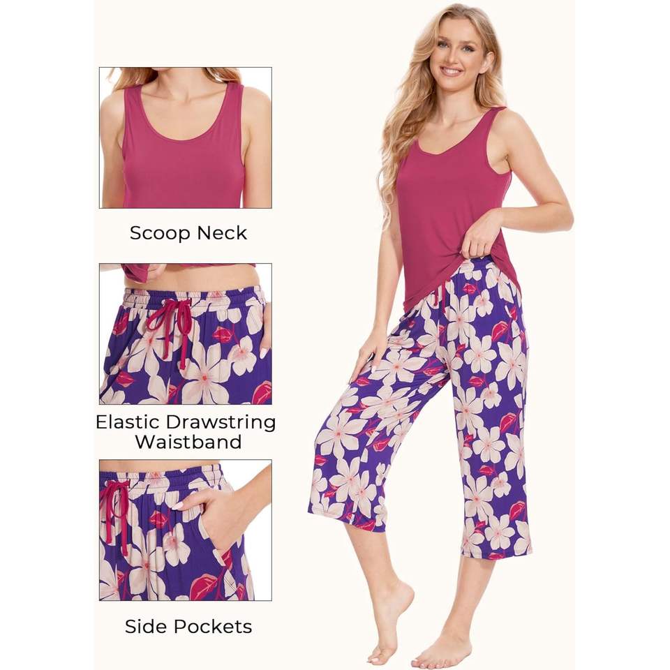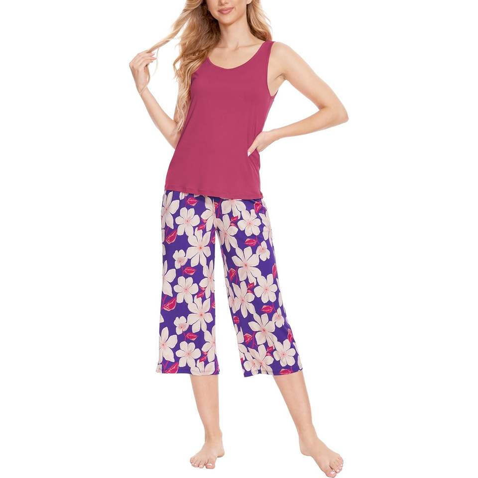 Women's Long Pajama Pants Sleeveless Tank Top Capri Pants Soft Sleepwear Lounge Wear Pyjamas Women Homewear