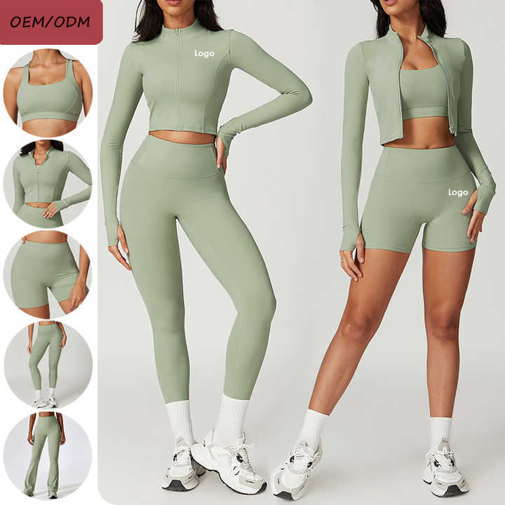 Women's Long Sleeve 4 Piece Yoga Set Solid Pattern Sweat Suit Gym Clothes Kit with Butt Lift Factory Wholesale Fitness Clothing