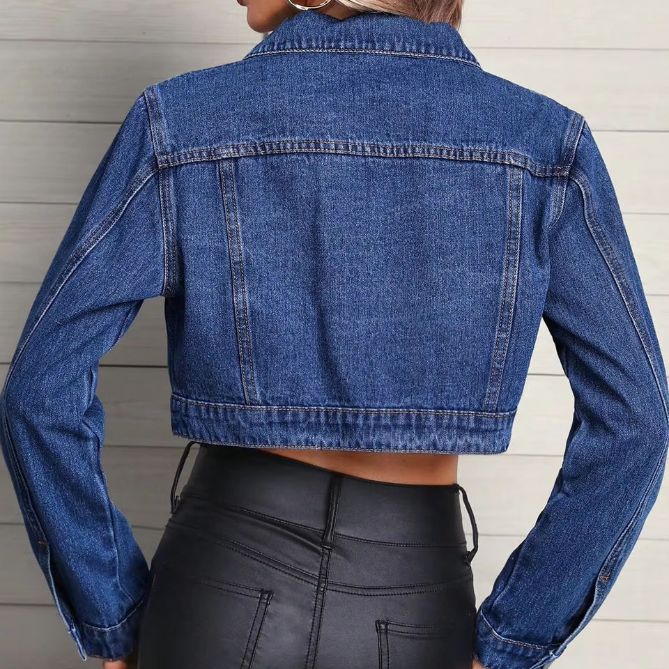 Women's Long Sleeve Street Style Denim Jacket Short Solid Color Casual Fashion Basic Jacket for Young Women