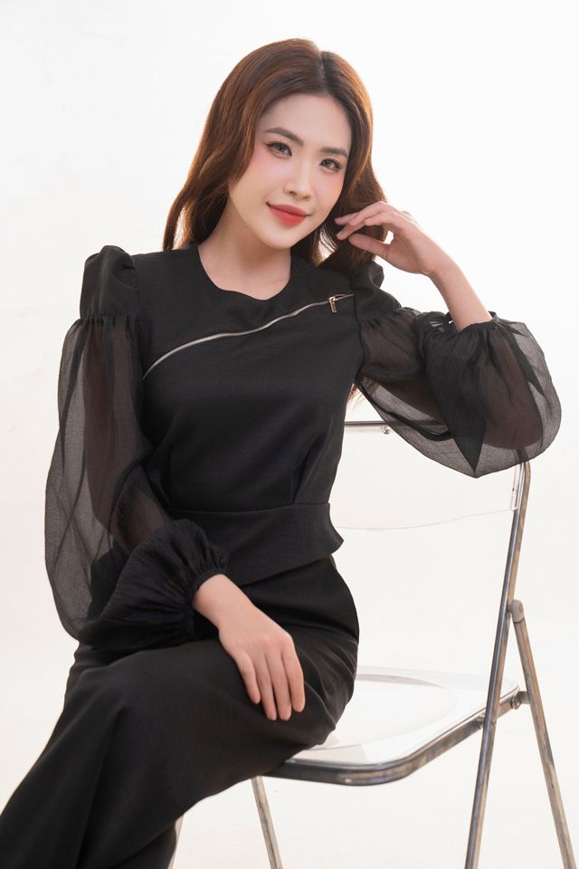 Women's Long-Sleeve Tweed Top with Front Zipper Black Sheer Mesh Puff Sleeve Slim Fit Party Blouse Tops Women