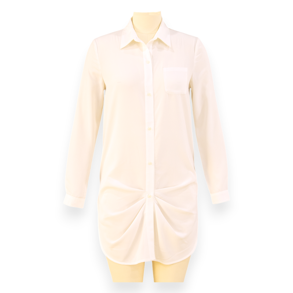 Women's Long Sleeve White Shirt Tunic Blouse with Button-Down Collar, Casual Office Wear | Cambodia Clothing Manufacturer