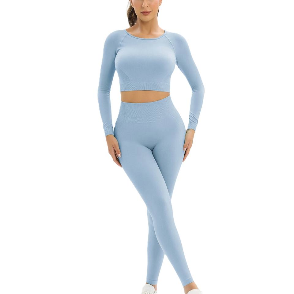 Women's Long Sleeves Crop Yoga Set Ladies Sexy Yoga 2 Piece Set High Waist Leggings Tight Women's Bodysuit 4 way Stretchable